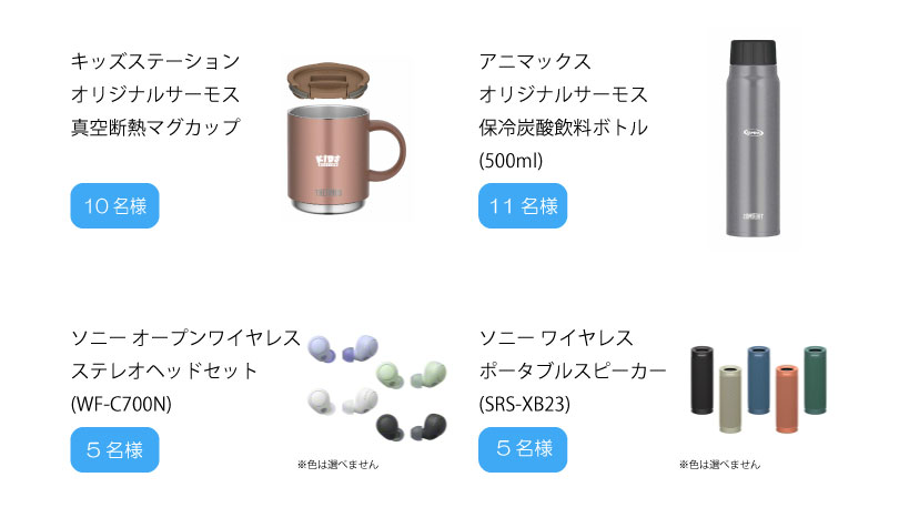アニマックス・キッズステーションオリジナルグッズ、ソニー製品プレゼント